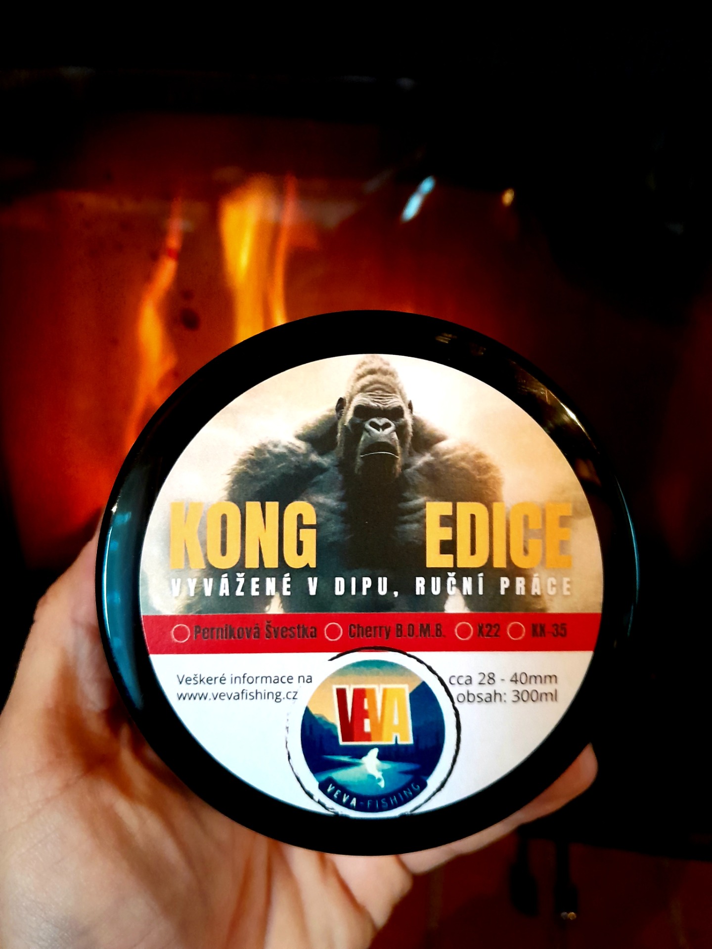 KONG EDICE našeho bestselleru. OPRAVDU VELIKÉ KOULE, KTERÉ DOPORUČUJE KAŽDÁ GODZILA! Chceš kouli, která tam vydrží, ale nemáš rád extra tvrdé? Zároveň nechceš časté záběry od dorostu? Zkus to a kup si limitovanou, ručně v dlaních koulenou edici v rozměrech 28 - 40mm! Vhodné i do studené vody! V balení najdeš 7ks opravdu velikého boilie. (Dříve byly v malém sáčku jen 4ks, nově, ale prodáváme větší balení v podobě pevné krabičky, která se lépe přenáší, skladuje a nehrozí únik dipu). Limitka vhodná na dovolenou, delší výpravy. Jedná se o totožnou směs, jako chytací speciál, koule je tedy i v této velikosti vyvážená! Zmenšuje se pozvolným odbalem.