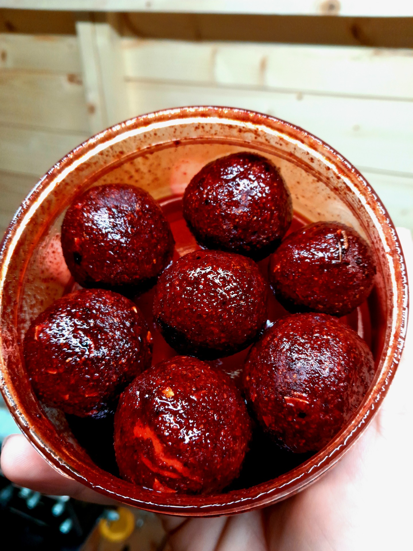 Tak jako všechny chytací kuličky , je samozřejmě i Cherry B.O.M.B. vyvážená, tedy dosedá zlehka na dno a neboří se do bláta, čímž nesaje tolik okolních pachů a zároveň je pro kapra hůře odhalitelná jako past! Nadále jsou kuličky již více jak 10dní boosterované. Odpadá tím nutná koupě dipů a podobných, dnes již nutností. Kulička je dotažena a připravena jít na lov!