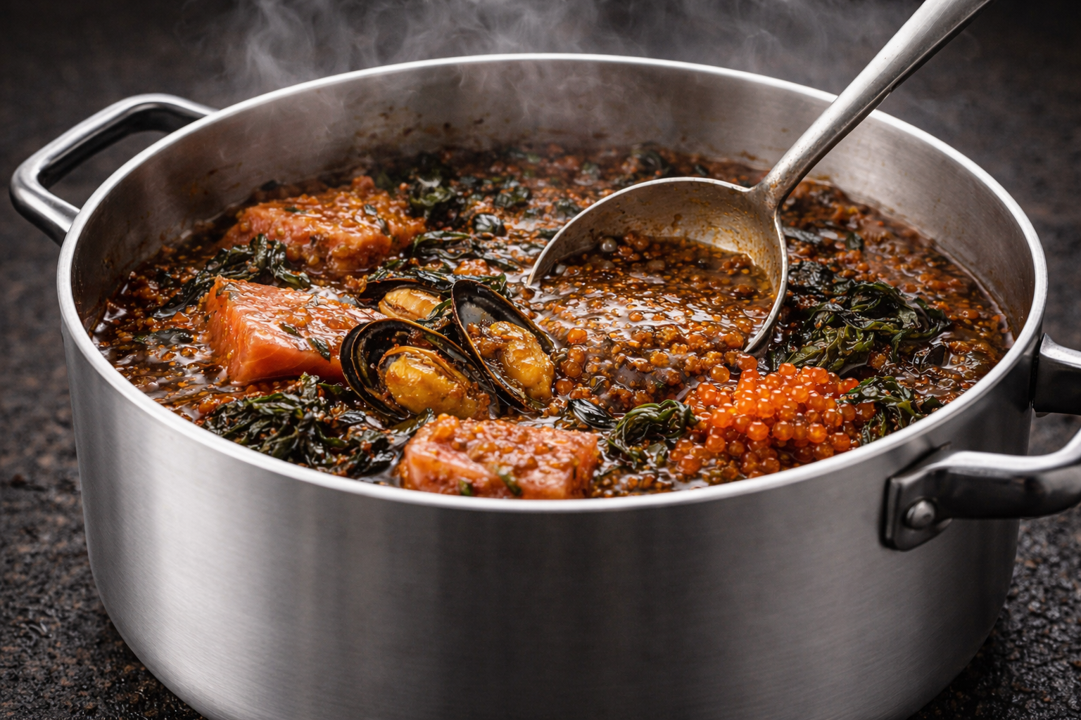 Extra hustý, vysoko koncentrovaný dip, postavený na divokom lososovi, mäse z mušlí, kaviáru a morských riasach.