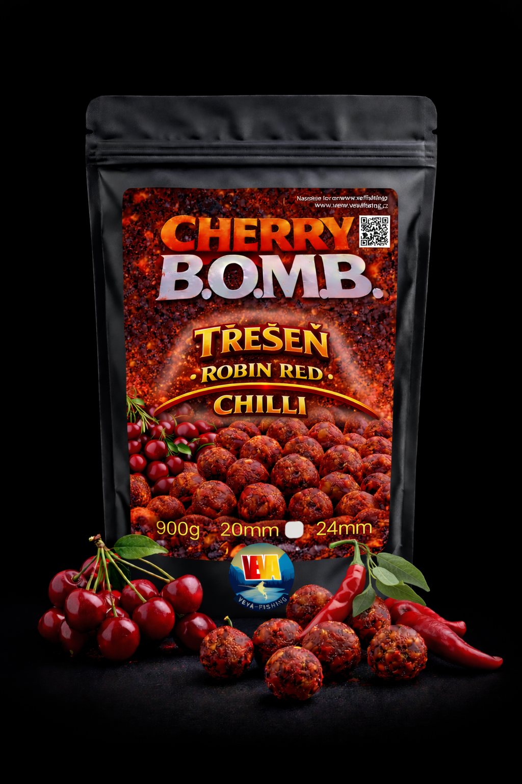 Cherry BOMB je výrazná vnadící kulička navržená nejen pro krmení, ale i pro přímý lov. Kombinuje silnou třešňovou stopu, osvědčený Robin Red, chilli papriky a kvalitní rybí proteiny. Výsledkem je nástraha s okamžitým účinkem a dlouhodobým potravním signálem.