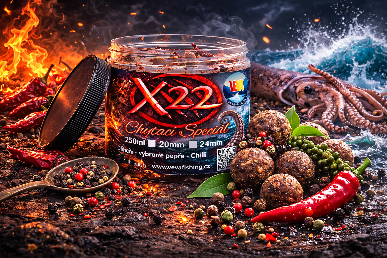 Navýšený obsah olihně zesiluje přirozený potravní signál a ve spojení s vybranými druhy pepřů a chilli paprik vytváří výrazný dráždivý efekt. Silice podporují rychlé uvolňování atraktivních látek i v chladné vodě, což z něj dělá výbornou zbraň pro jaro, podzim i zimní vycházky.